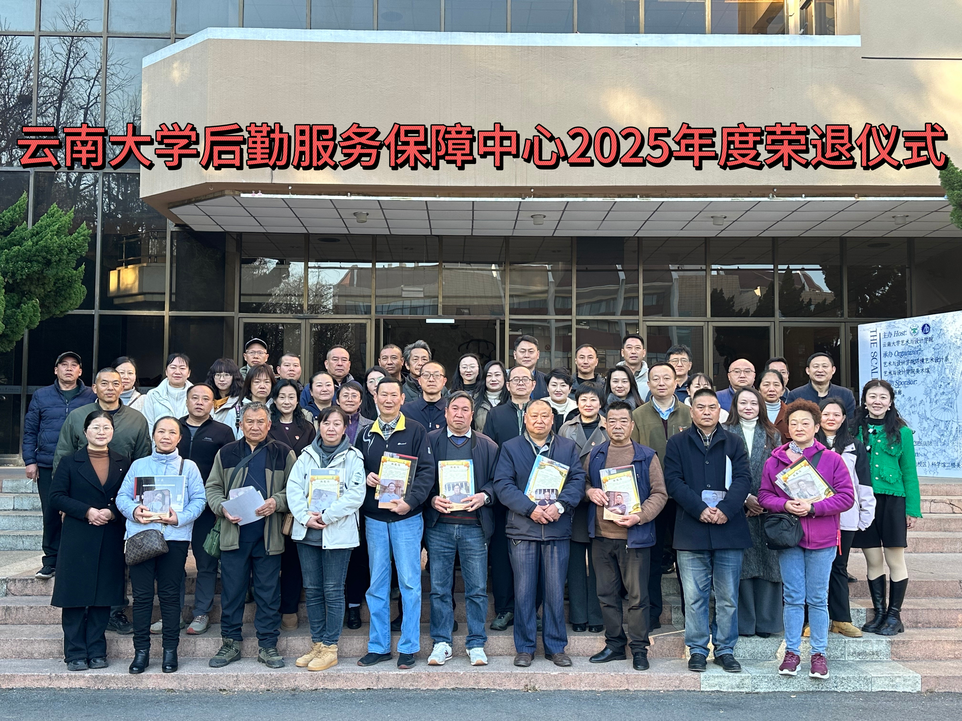 云南大学后勤服务保障中心在深耕校园保障的征程中,始终秉持“管理育人、环境育人、服务育人”的精神内核,积淀了砥砺奋进的坚实底蕴。一代代后勤人匠心守初心、奉献显担当,在校园的每个角落书写着责任与温情。 2026年1月19日上午,东陆校区科学馆11号会议室充满敬意与暖意,后勤服务保障中心在此隆重举行2025年度退休员工荣退仪式,向长期奋战在一线的13位老同志致以崇高敬意与诚挚祝福,共同见证他们职业生涯的圆满收官,...