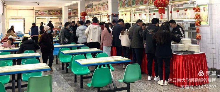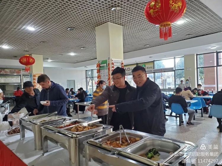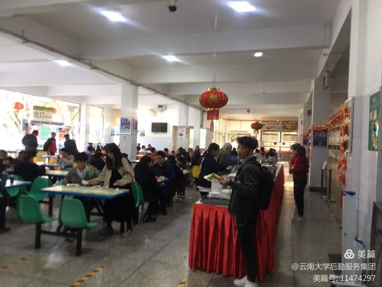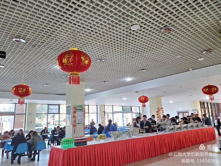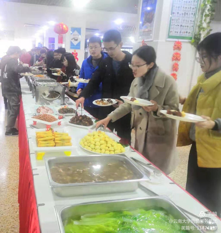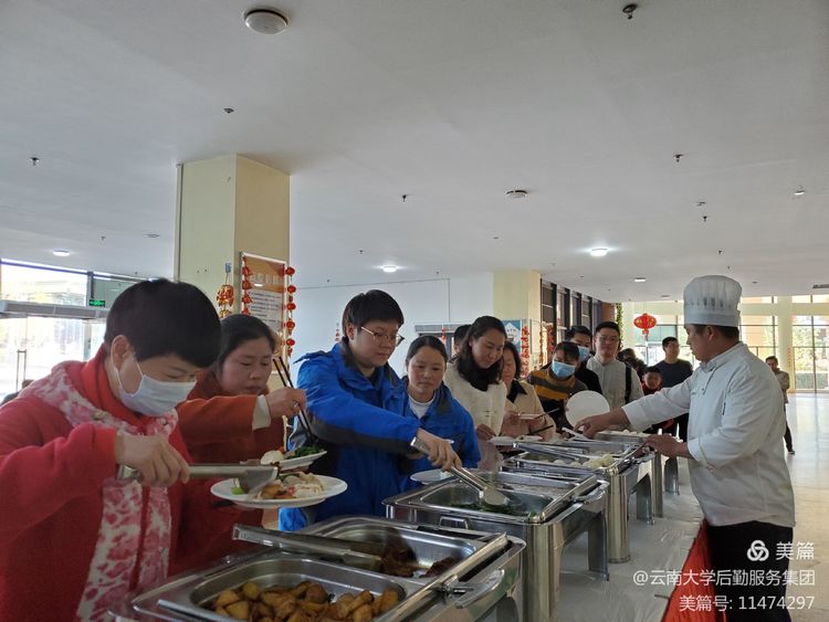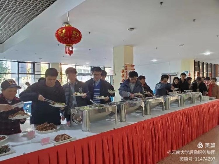 为认真贯彻落实学校领导要求,后勤集团分别在呈贡校区和东陆校区的6个食堂,为留校过春节的587名学生和值班人员准备了丰盛的免费自助餐。