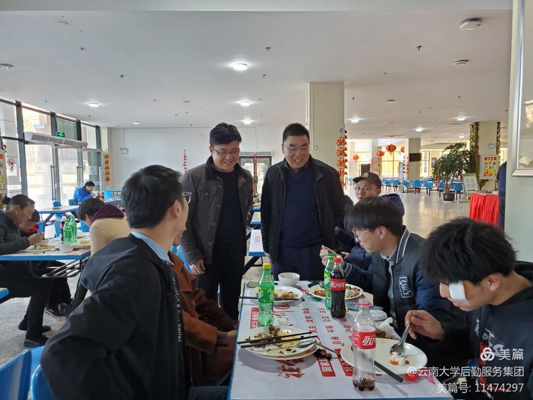林书记一行还仔细询问并认真查看了集团为留校学生和春节值班人员所准备年夜饭情况,对食堂营造的喜庆节日氛围和精心安排的年夜饭表示感谢,叮嘱后勤集团负责人转达学校领导对师生的关心问候和新春祝福,让大家吃好年夜饭,过一个欢乐祥和、温暖如家的新春佳节!