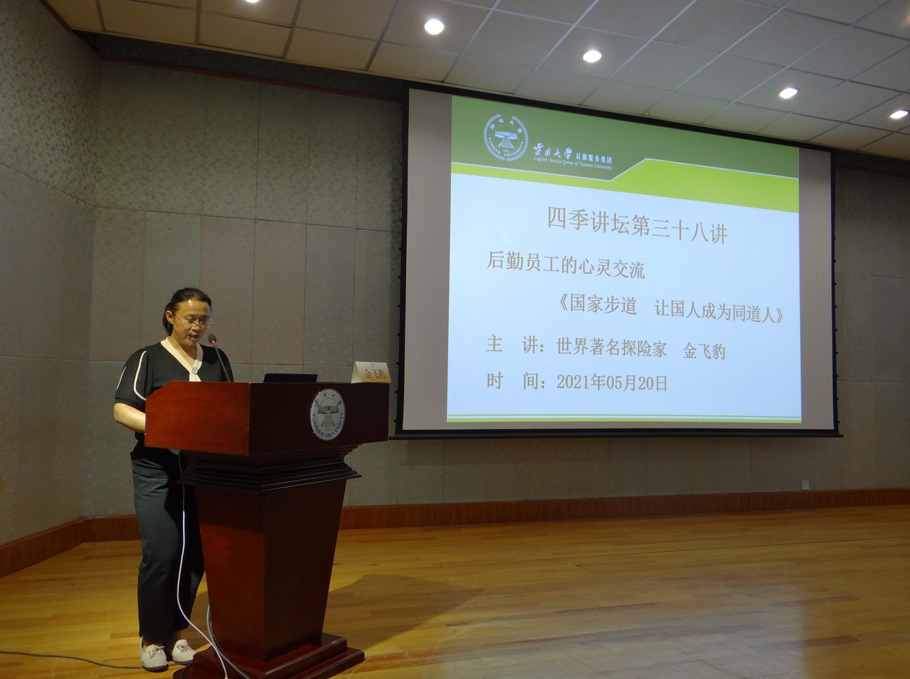 5月20日晚,云大后勤四季讲坛第三十八讲在科学馆二楼报告厅举行,邀请中国探险协会常务副主席、国家步道专委会主任、著名探险家金飞豹以“后勤员工的心灵交流——国家步道,让这个国家的人都成为同路人”为题进行讲座,后勤集团党政领导、职工代表共220余人参加讲座。