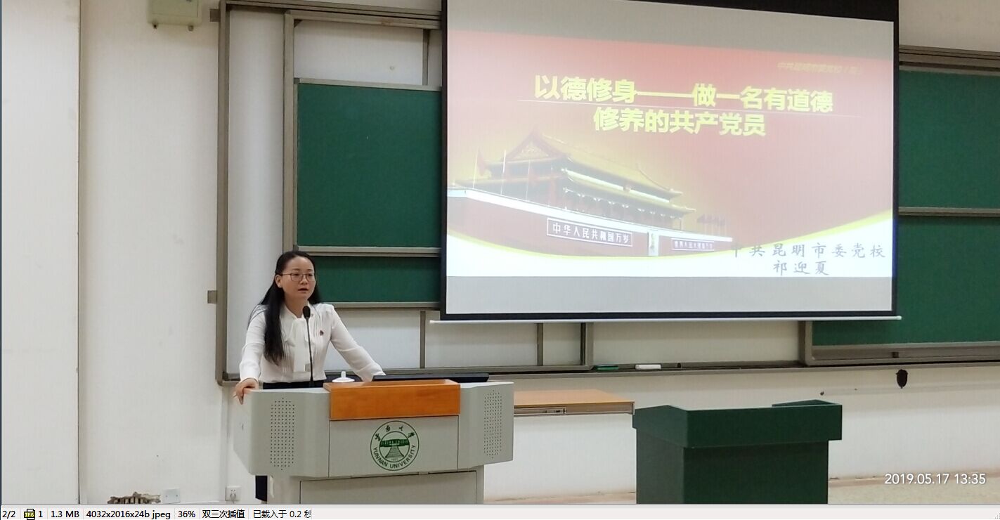 为深入学习贯彻习近平新时代中国特色社会主义思想,开展好“不忘初心、牢记使命”主题教育活动,锤炼后勤党员同志忠诚干净担当的政治品格,5月17日,后勤集团党委在呈贡校区文汇楼2幢2118教室,组织开展“不忘初心、牢记使命”主题党日活动,邀请昆明市委党校专家祁迎夏作为主讲嘉宾。后勤集团全体在职党员和入党积极分子共计140余人参加活动。