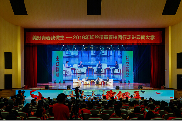 6月3日,“美好青春我做主”2019年红丝带青春校园行活动在云南大学呈贡校区学生会堂举行,特别邀请了预防艾滋病宣传员濮存昕,国家级艾滋病防控专家李惠琴、贾曼红担任嘉宾。活动通过主题访谈、互动问答、文艺表演等多种形式,为师生们上了一堂生动有趣的防艾公开课。