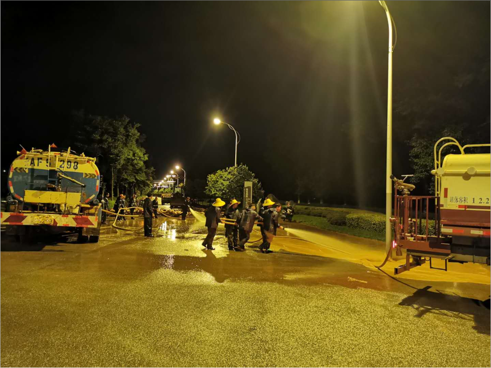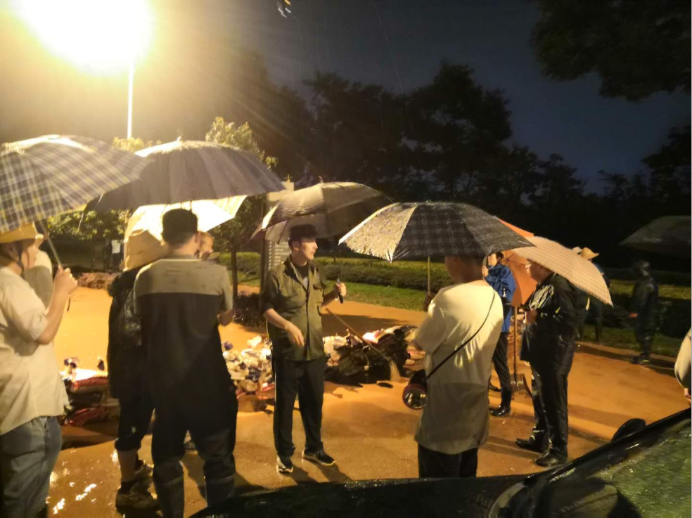 险情就是命令,抢险刻不容缓。刘晓江副校长得知情况后,第一时间奔赴现场,顶风冒雨,亲自指挥抢险工作。要求后勤集团齐心协力、攻坚克难、勇挑重担,尽最大努力降低灾害损失,全力做好防洪排涝、管沟疏通、淤泥清运、道路清洗各项工作,尽快恢复道路整洁和交通通行,切实保障学校和师生财产安全,努力维护好美丽校园。
