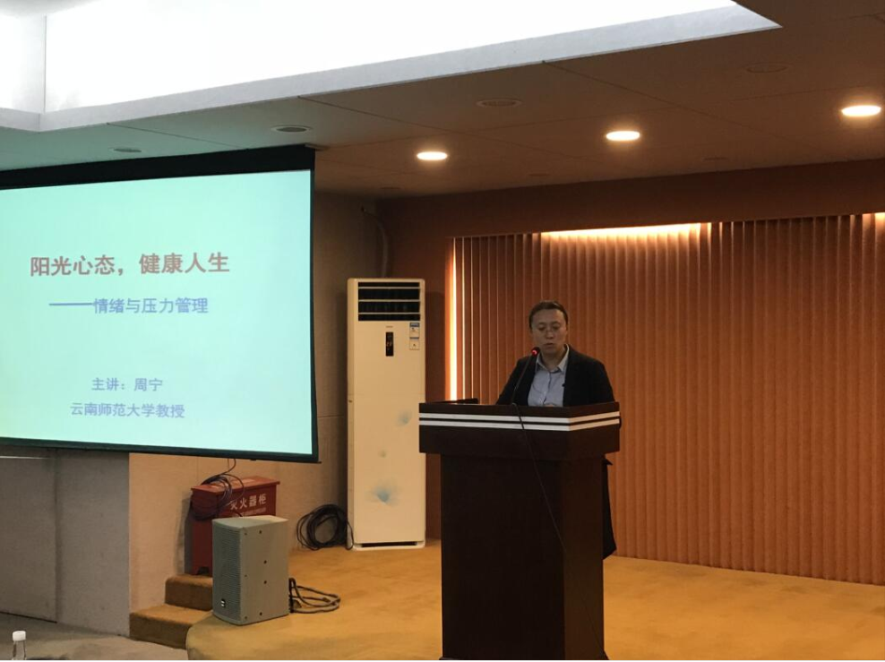 3月28日晚,云大后勤四季讲坛第三十四讲在云大宾馆四楼会议室举行,邀请到云南师范大学周宁教授以“后勤员工的心理建设:阳光心态、健康人生——情绪与压力管理”为题进行讲座。后勤集团党政负责人、职工代表共260人参加讲座。