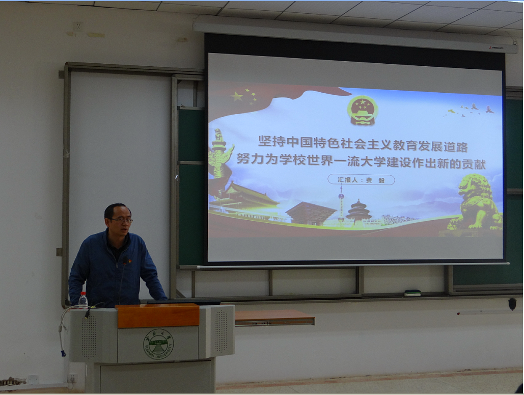2018年11月16日,后勤服务集团党委书记费毅在呈贡校区文汇楼2118教室作全国教育大会精神宣讲报告。费毅书记结合学校和集团实际,着重围绕习近平总书记提出的“九个坚持”的教育发展规律、“六个方面下功夫”培养时代新人的讲话要点进行了详细阐释。他强调,习近平总书记在全国教育大会上发表的重要讲话,是站在党和国家事业发展全局的高度,系统总结了我国教育事业发展的成就与经验,进一步阐述了教育优先发展的重大意义,科学回答了“培养什么人、怎样培养人、为谁培养人”一系列根本性问题,是做好新时代教育工作的纲领性重要讲话,为加快推进教育现代化、建设教育强国、办好人民满意的教育指明了前进方向、提供了根本遵循。并要求各党支部迅速组织开展各种形式的全国教育大会重要精神学习活动,迅速掀起学习热潮。