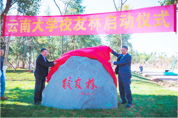 12月23日,云南大学校友代表大会、校友总会第六届理事会换届大会暨第一届理事会会议在呈贡校区召开,来自海内外的近300位校友代表欢聚母校,共叙情谊,共话发展。期间,学校举行“校友林启动仪式”,杨林书记和林文勋校长与校友们共同植下校友们认捐的114株雪松纪念树,挂上树牌并合影留念。