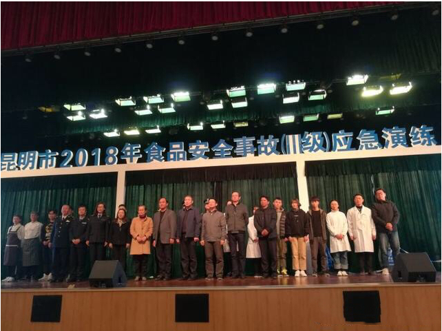 12月27日下午,由昆明市人民政府主办,呈贡区人民政府承办,云南大学协办的“昆明市2018年食品安全事故(III级)应急演练”活动在云南大学呈贡校区学生会堂举行。昆明市人民政府王冰副市长莅临现场;云南省食品安全办副主任、省市场监管局副局长杨柱,呈贡区区长张先宝,云南大学后勤服务集团党委书记费毅出席活动;昆明市政府食安委成员单位、昆明市各县(市)区食安办相关人员500余人观摩活动。