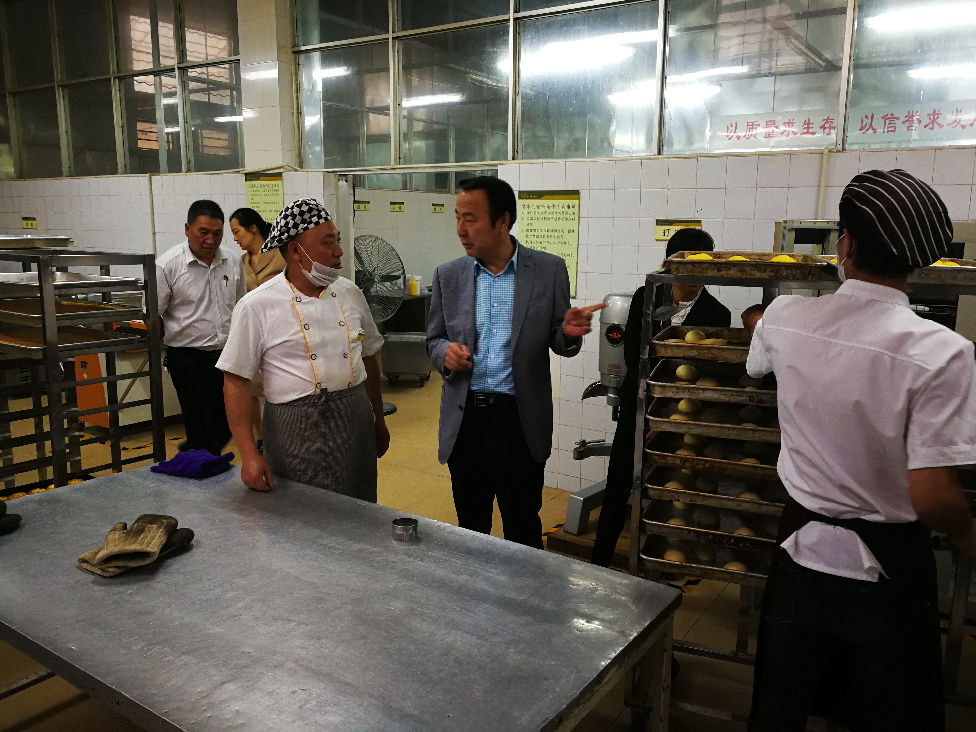 在糕点房,刘副校长了解了鲜花饼制作过程和近期销售情况,鼓励师傅们要了解师生需求,努力开拓市场,加大经营规模,开发新式品种,增加售卖亮点,为多元化餐饮结构添砖加瓦。