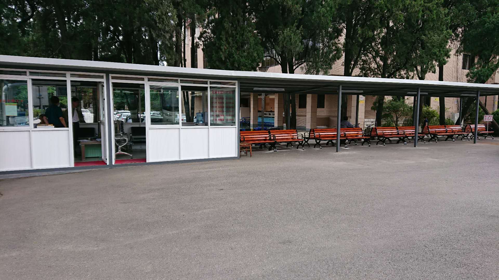 此次改造,新增了遮雨棚并配备座椅,对室内墙体重新粉刷,安装防滑地板,增设通风设施,修建人行便道,栽种绿化植物,提供饮用水服务。经过改造,交通车乘车环境焕然一新。