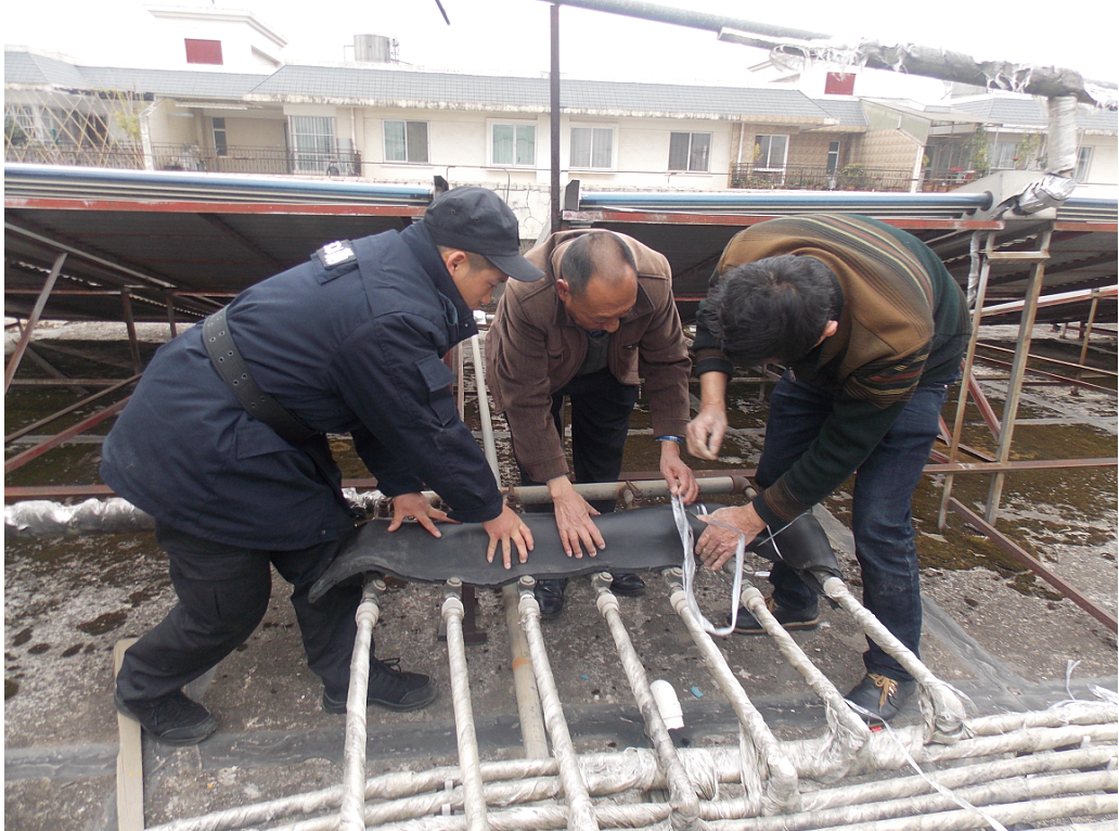 龙泉小区物业服务部通过业主微信群、宣传栏等方式及时发布预警信息,广泛宣传防寒防冻措施;提前购买保温材料,派出20多名工作人员加班加点对裸露在外的水表进行包裹处理;关闭太阳能主水阀,避免太阳能设备损坏;加大对供水管道、水泵房等设施设备的巡查力度,发现问题及时处理;对损坏的51块水表,及时购买材料进行更换。