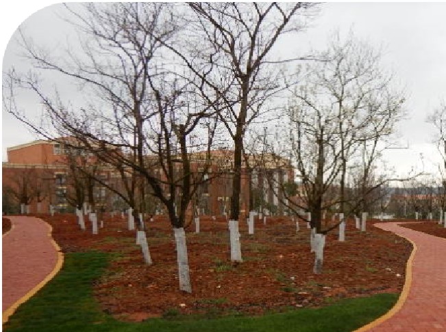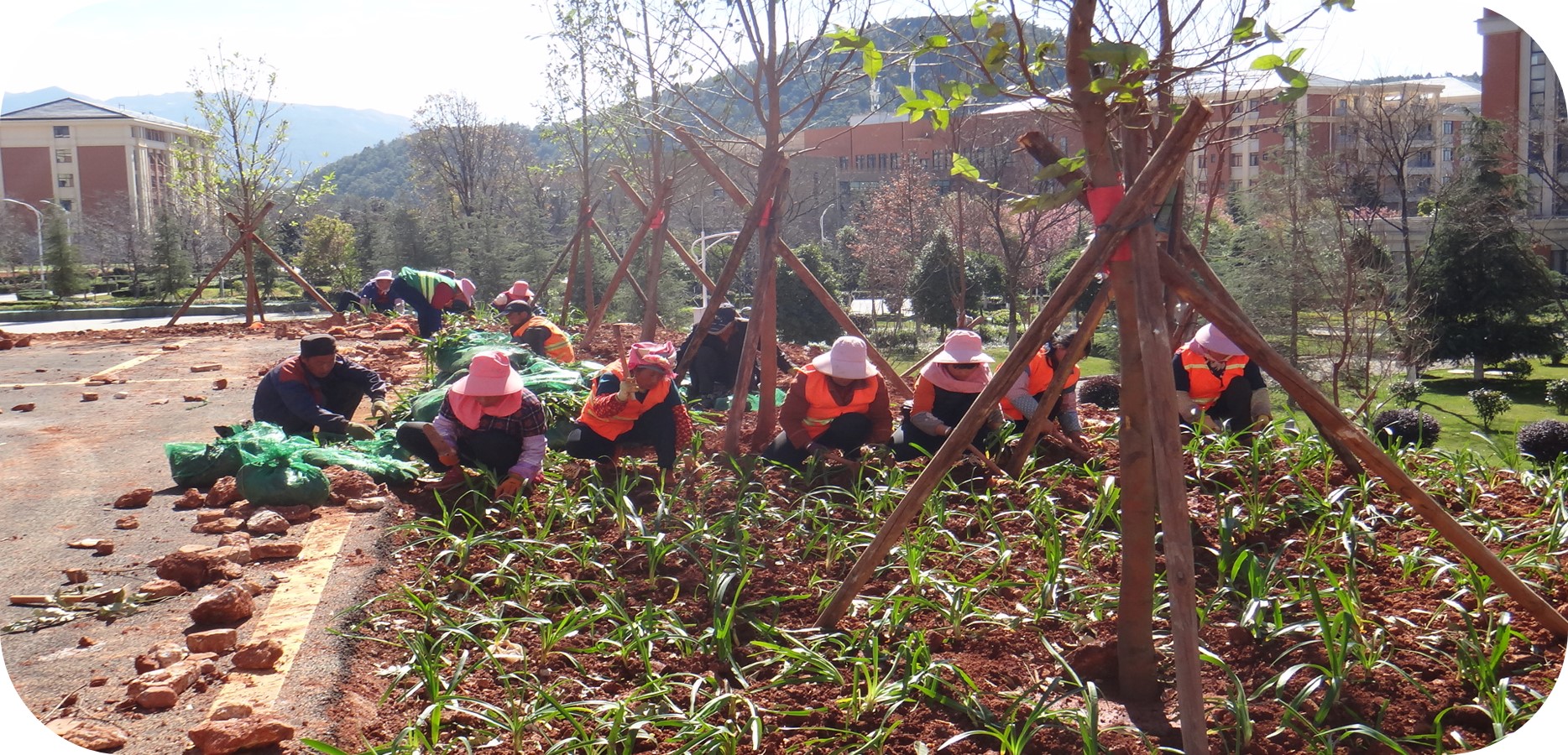 2017年,后勤集团根据学校“四化”建设工作领导小组要求,持续推进呈贡校区绿化建设,取得新成绩。一是完成泽湖、云山及图书馆内庭院等区域苗木种植工作,种植乔木4200株(其中挖取及种植万溪冲梨树1188株),种植爬藤43000株、花灌木143300株、草坪15800平方米。完成外环西门至梓苑球场行道树改良工作。二是完成西门至泽湖引水管网建设,打造月泮景观,提升泽湖区域景观效果,安装绿化管网805米。三是完成樱花林及双创林、国际林等区域小道铺设工作,铺设小道1798.33平方米。四是完成26万平米绿化中水覆盖,安装绿化管网6622米。五是完成枇杷晚翠园绿化景观方案设计工作和碑廊、风节亭的景观道路铺设工作。六是完成外环西门至梓苑球场行道树改良工作。七是精心做好绿化管养工作。不断加强员工技术技能培训,加大工作力度,实施精细化管养,努力营造风景宜人校园环境。学校绿化工作受到广泛好评,各地高校和单位纷纷到校参观学习,多家新闻媒体进行了宣传报道。