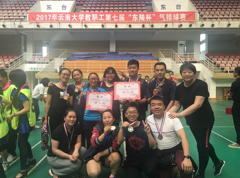 2017年5月,云南大学教职工第七届东陆杯气排球赛在东陆校区体育馆如期举行。后勤集团男、女代表队团结一心,奋勇拼搏,经过四天激烈角逐,男女队分获第三名、第二名的优异成绩。