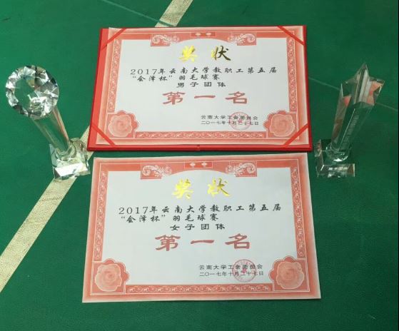 2017年10月,云南大学教职工第五届“会泽杯”羽毛球赛在东陆校区体育馆如期举行。在本届比赛中,集团代表队表现突出,取得了男、女团体第一名,乙组男双第二名的历史最好成绩。
