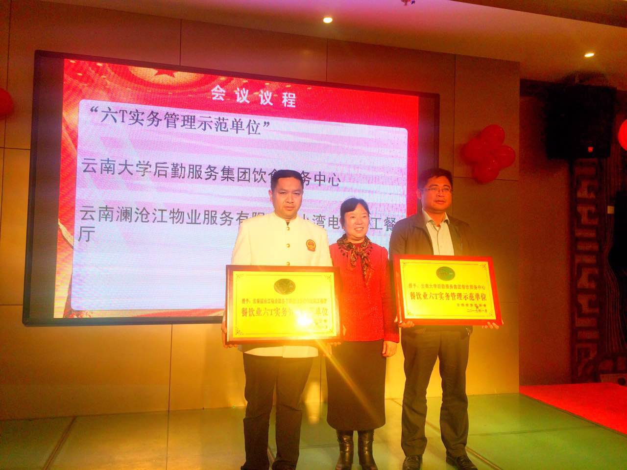 2017年1月19日,在云南省烹饪协会第四届六次理事会上,我校饮食服务中心被授予"云南省餐饮业六T实务管理示范单位"。这是继云南省教育厅、云南省食品药品监督管理局、云南省教育后勤协会授予"云南省高校"六T"实务现场管理达标示范食堂"称号后的又一殊荣。
