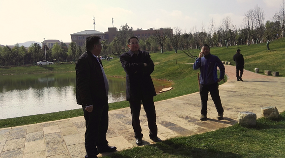 2月28日,学校党委书记,绿化美化文化建设工作领导小组组长杨林深入呈贡校区绿化施工现场,检查指导校园绿化建设工作,集团黄玉良总经理、张祥副总经理及相关工作人员陪同检查。