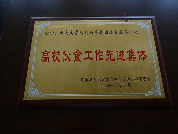 学校领导高度重视学生食堂工作,认真贯彻落实教育部等五部委和云南省教育厅等11部门有关做好高校食堂工作的文件精神,学校伙食工作在食品安全、服务质量、经营管理以及改革创新等方面均取得显著成绩,受到上级肯定、师生好评、同行关注。2016年7月31日—8月1日,中国教育后勤协会伙食管理专业委员会一届三次全体委员会议暨“伙专会”组织建立30周年纪念大会在哈尔滨隆重举行,会上,云南大学后勤服务集团饮食服务中心被授予“高校伙食工作先进集体”称号,这是继我校获评“中国高等学校伙食工作先进单位”之后获得的又一殊荣,在全省受表彰的2所高校中,我校成为连续两次受表彰的唯一高校;集团总经理助理、饮食服务中心主任徐晓辉被授予“高校伙食工作先进工作者”称号。
