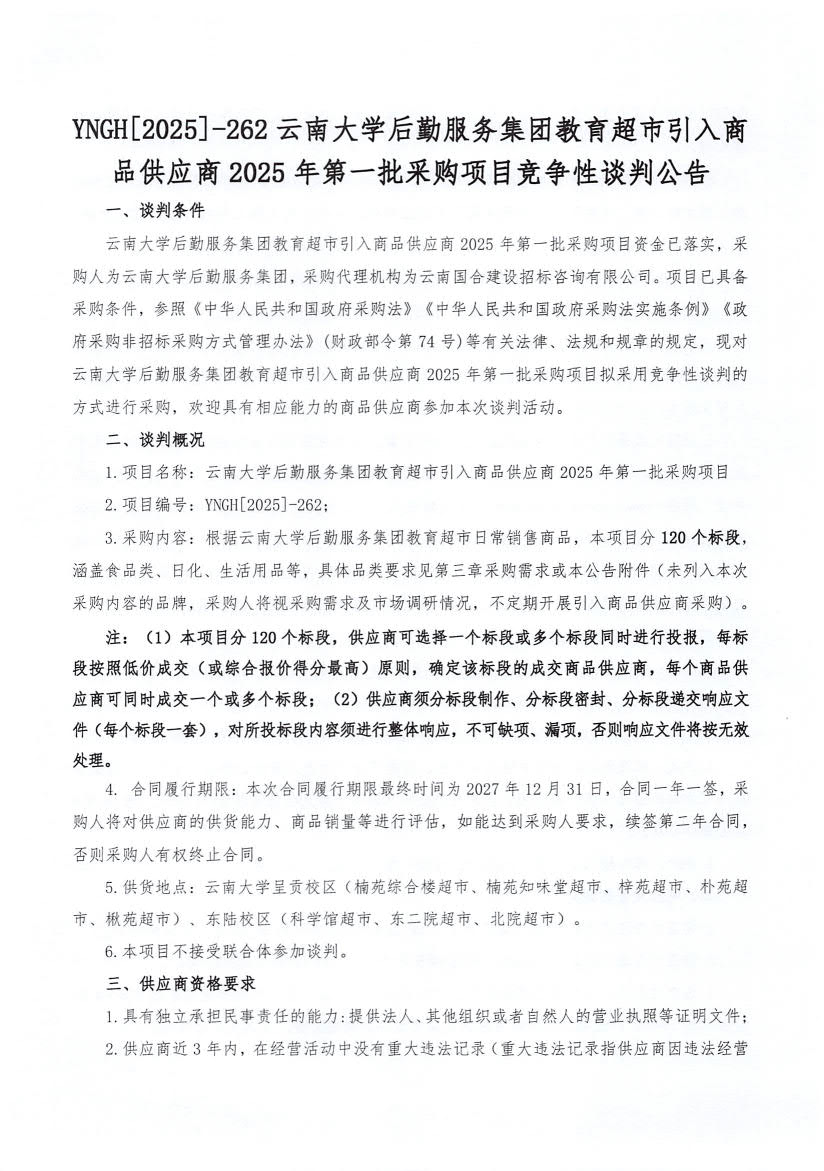 下一条:YNGH[2025]-262云南大学后勤服务集团教育超市引入商品供应商2025年第一批采购项目竞争性谈判公告