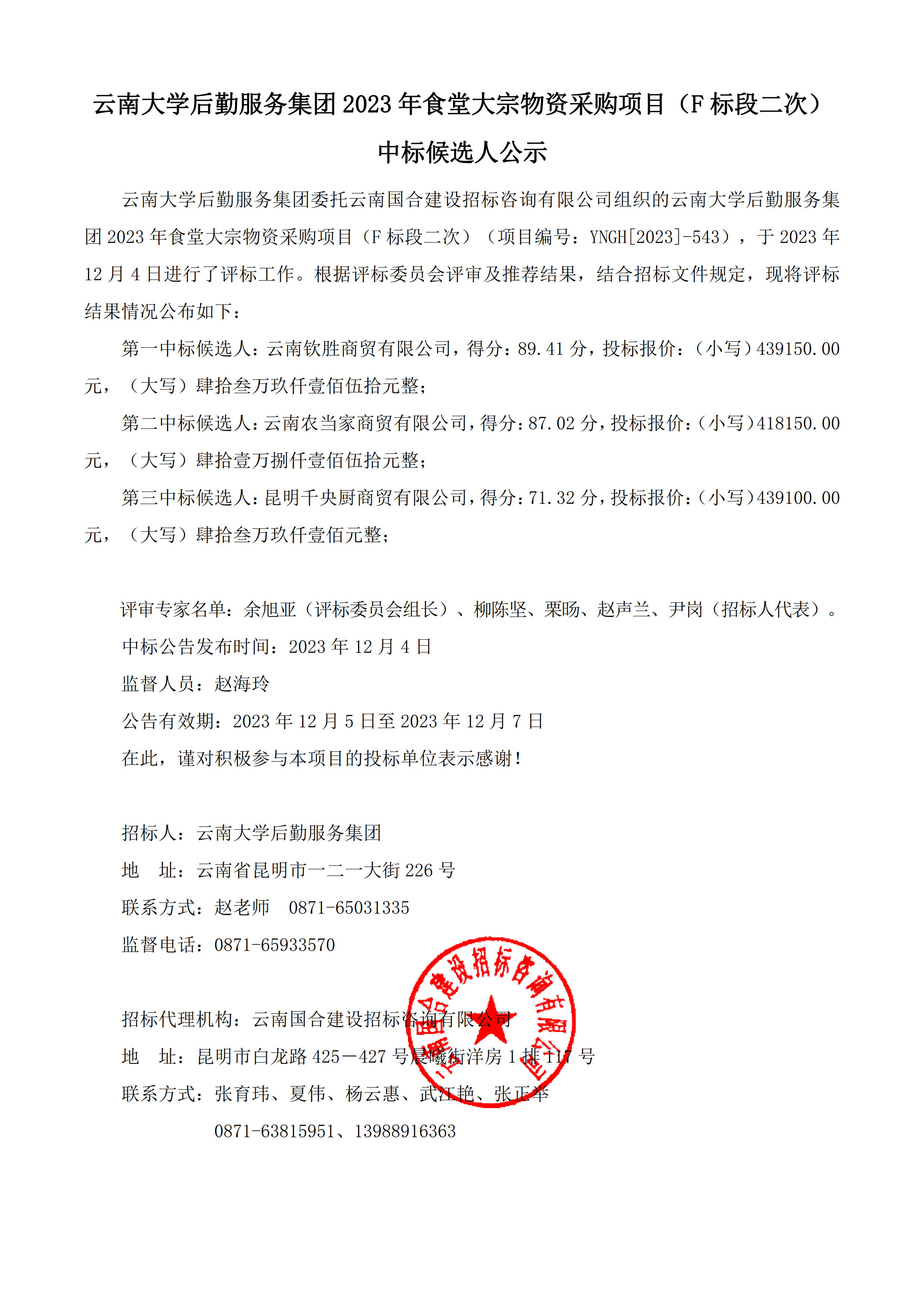 下一条:YNGH[2023]-643云南大学后勤服务集团劳务服务项目竞争性磋商成交结果公告_1