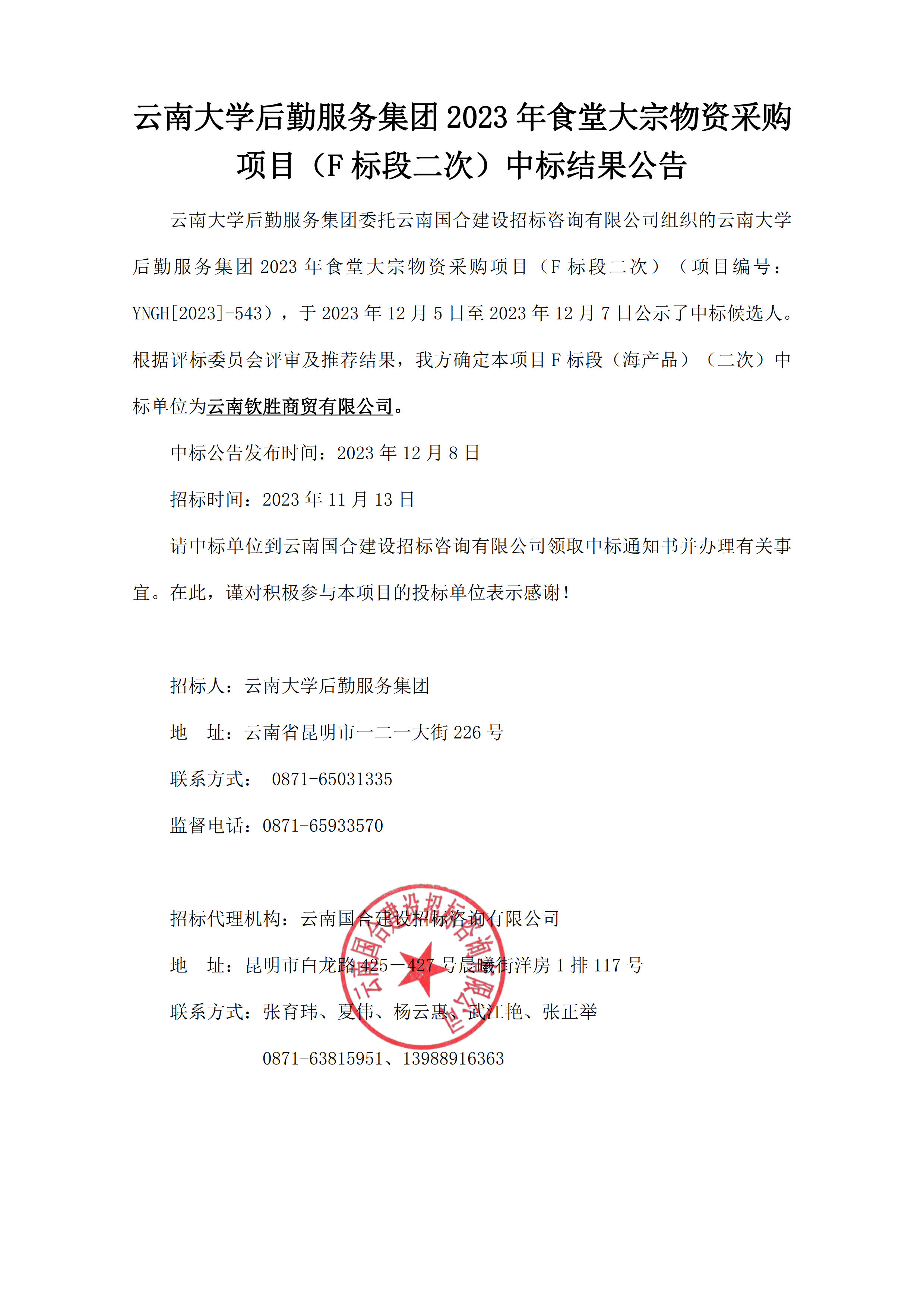 下一条:云南大学后勤服务集团2023 年食堂大宗物资采购项目(F 标段二次)中标候选人公示