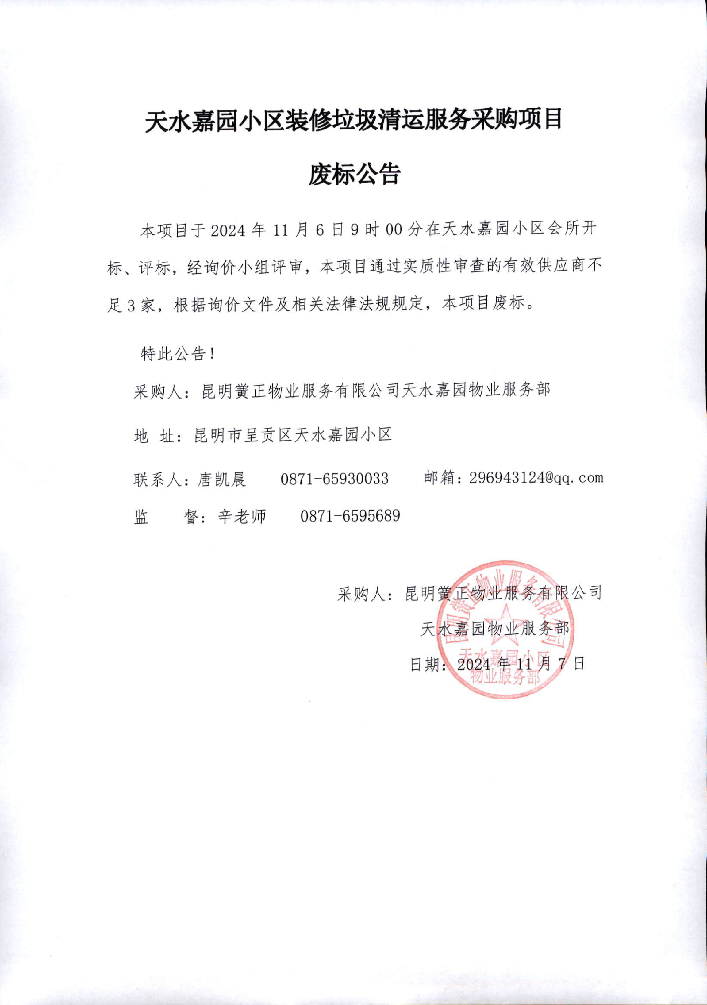 上一条:天水嘉园小区装修垃圾清运服务采购项目询价公告(二次)
