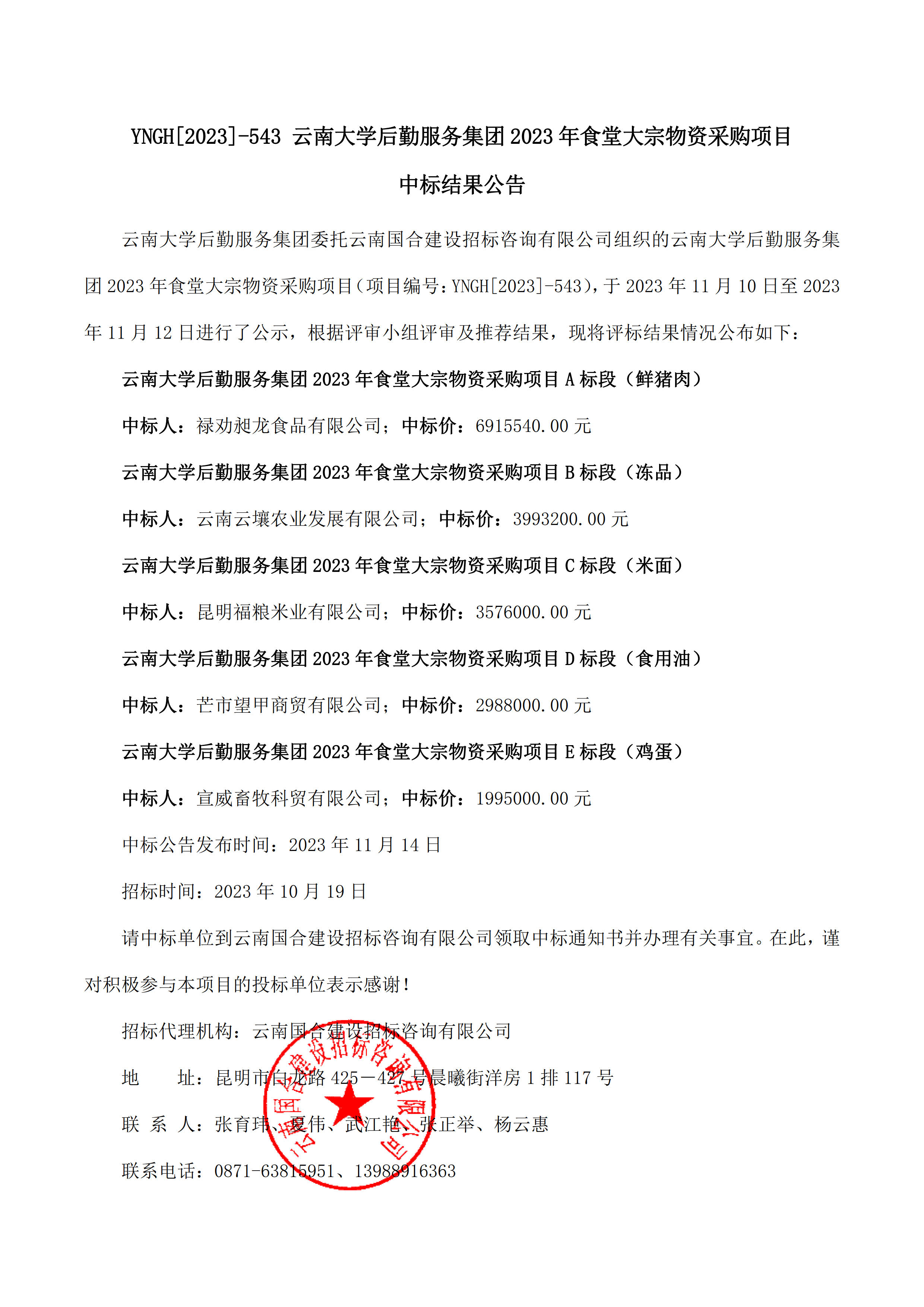 下一条:云南大学后勤服务集团2023年食堂大宗物资采购(F标段二次公告)项目