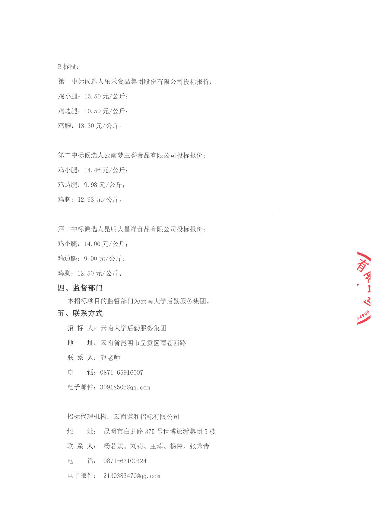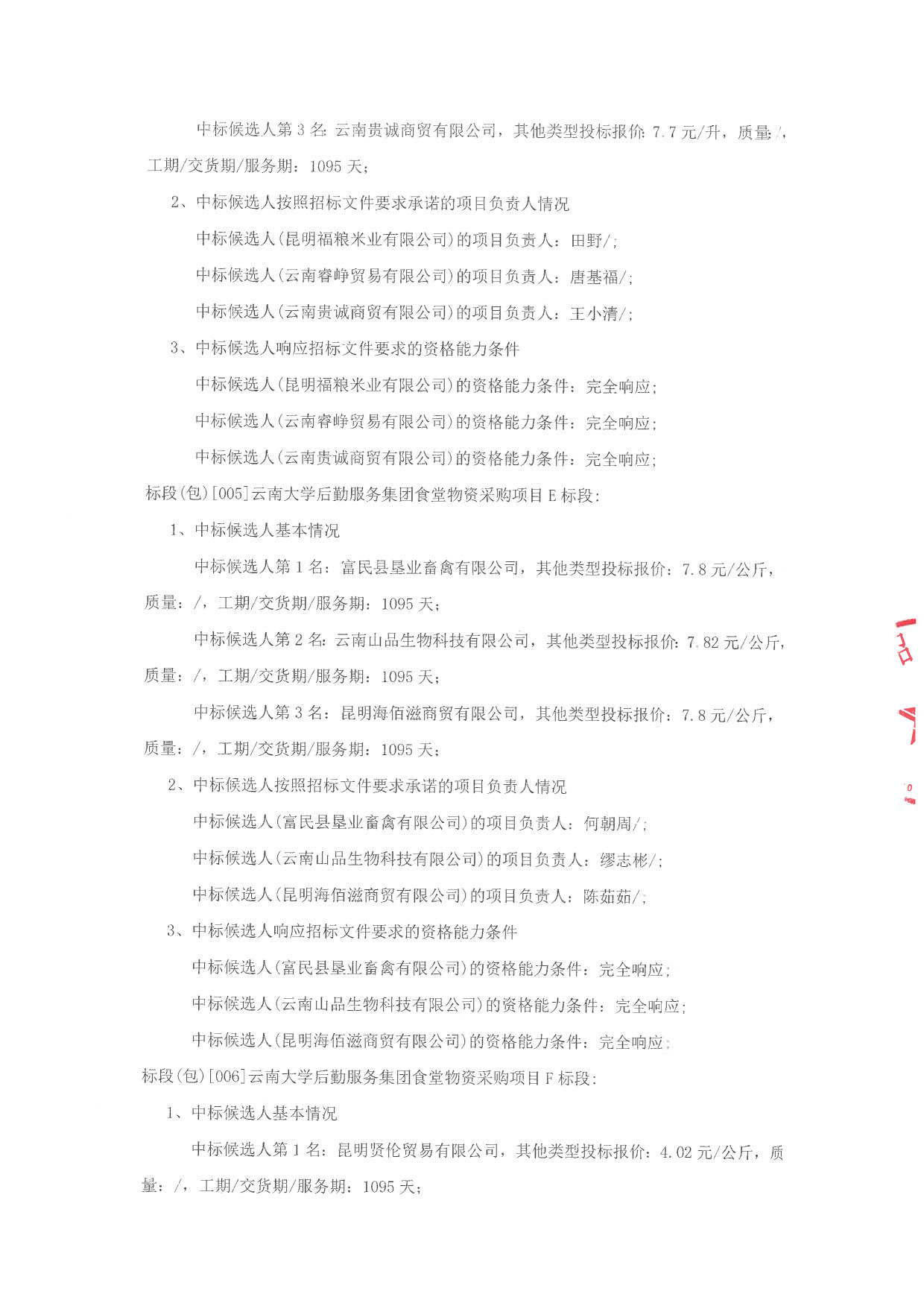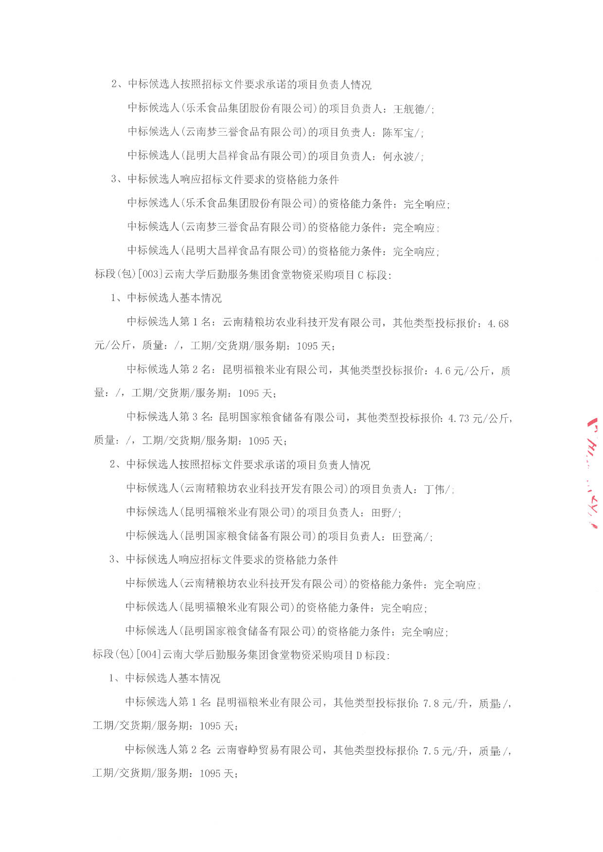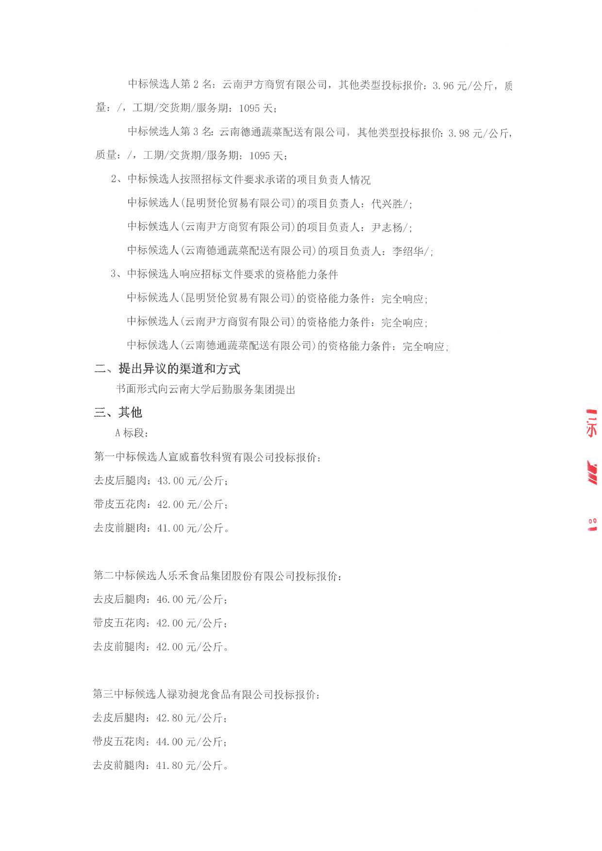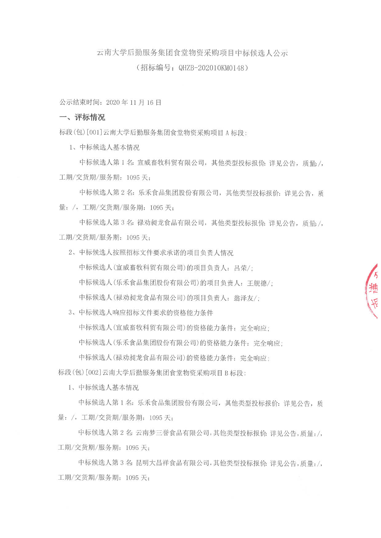 云南大学后勤服务集团食堂采购项目中标候选人公示