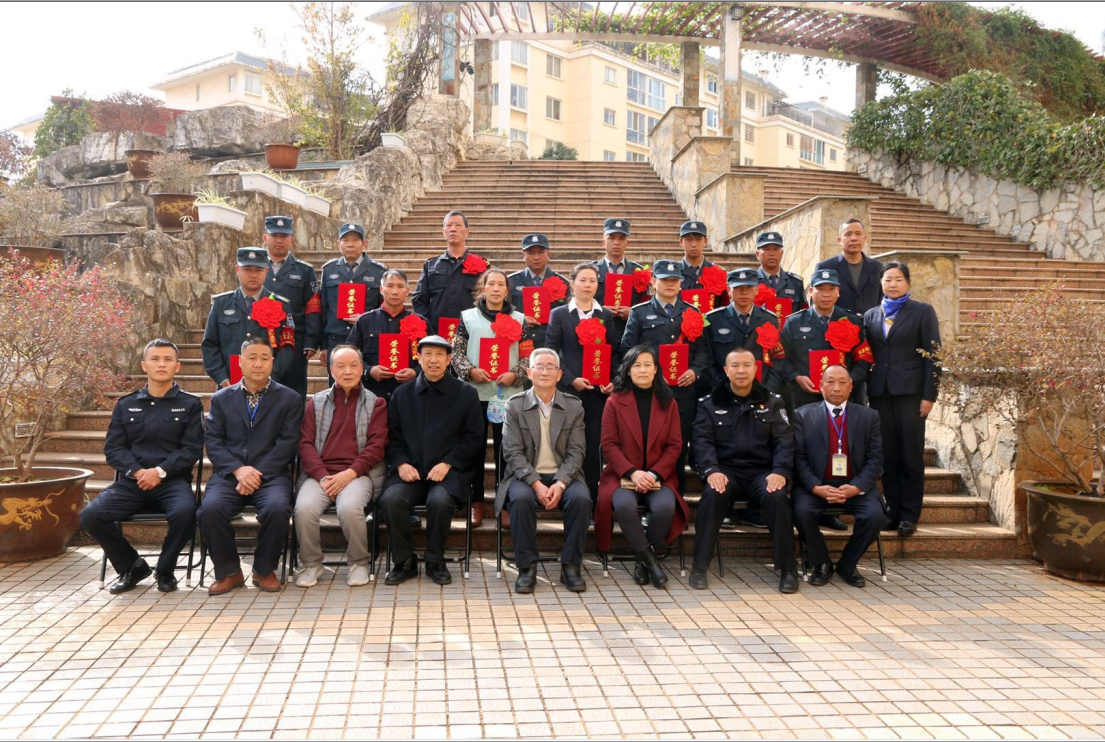 会上,马村派出所民警普劲松,后勤集团副总经理马学荣,业主委员会主任徐杨富、副主任文正祥、委员李云生,黉正物业副经理罗星查分别为受到表彰的员工颁发荣誉证书,勉励他们再接再厉,再创佳绩。此次表彰共评出3名五星级员工:杨云青、李自安、熊桂程,11名四星级员工:刘耀香、李龙、蔡永成、龚江涛、李成荣、李玉明、宋开明、王开云、钱元坤、王从富、凤凰珍。