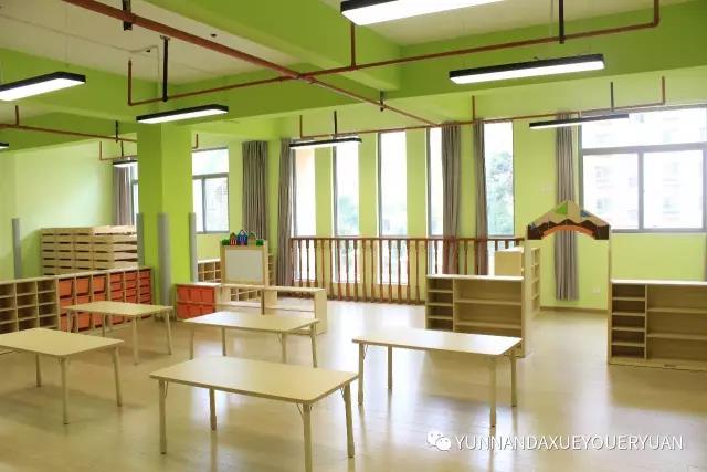 幼儿园整体设计在秉承云南大学传统文化风格的基础上,结合幼儿年龄、心理发展特点,充分扩大幼儿室内外活动空间,园舍宽敞明亮、温馨舒适,自然典雅而又极富童趣。