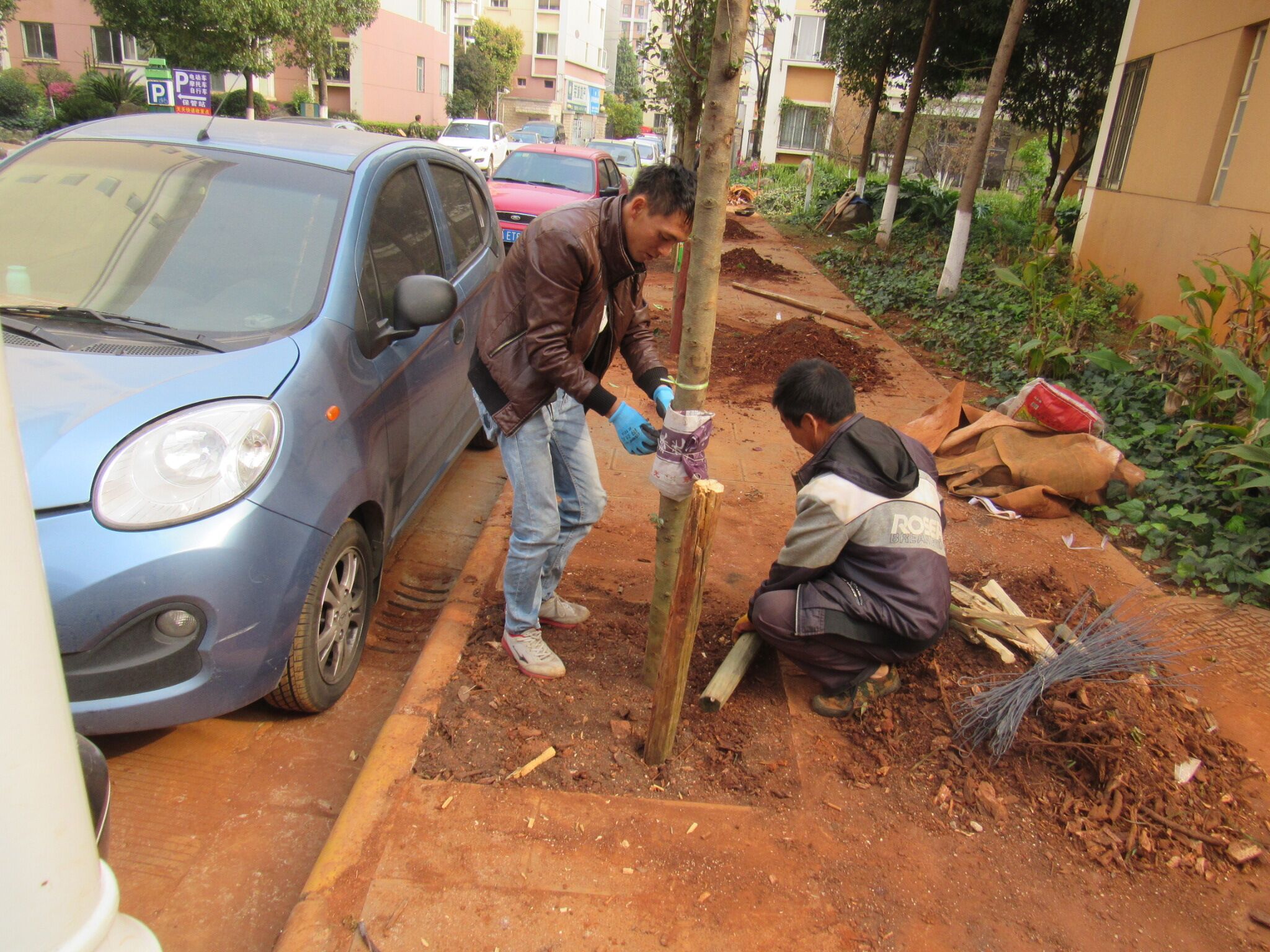 年初,后勤集团校园绿化中心协助黉正公司清除了小区内受寒潮影响冻死的小叶蓉,及时采购并补栽球花石楠100棵、蓝花楹28棵,银杏树5棵。为提高补栽苗木的存活率,黉正公司派专人负责苗木的浇灌和养护,用实际行动为业主们提供绿色生态环境。