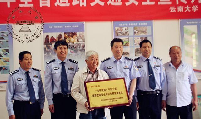会后,交警高支队杨杰副支队长为云南大学后勤服务集团交通车服务中心授予2015年度全省“文明交通-平安云南”道路交通安全知识竞赛荣誉单位,并对中心在全省交通安全知识竞赛中取得的优异成绩表示祝贺。