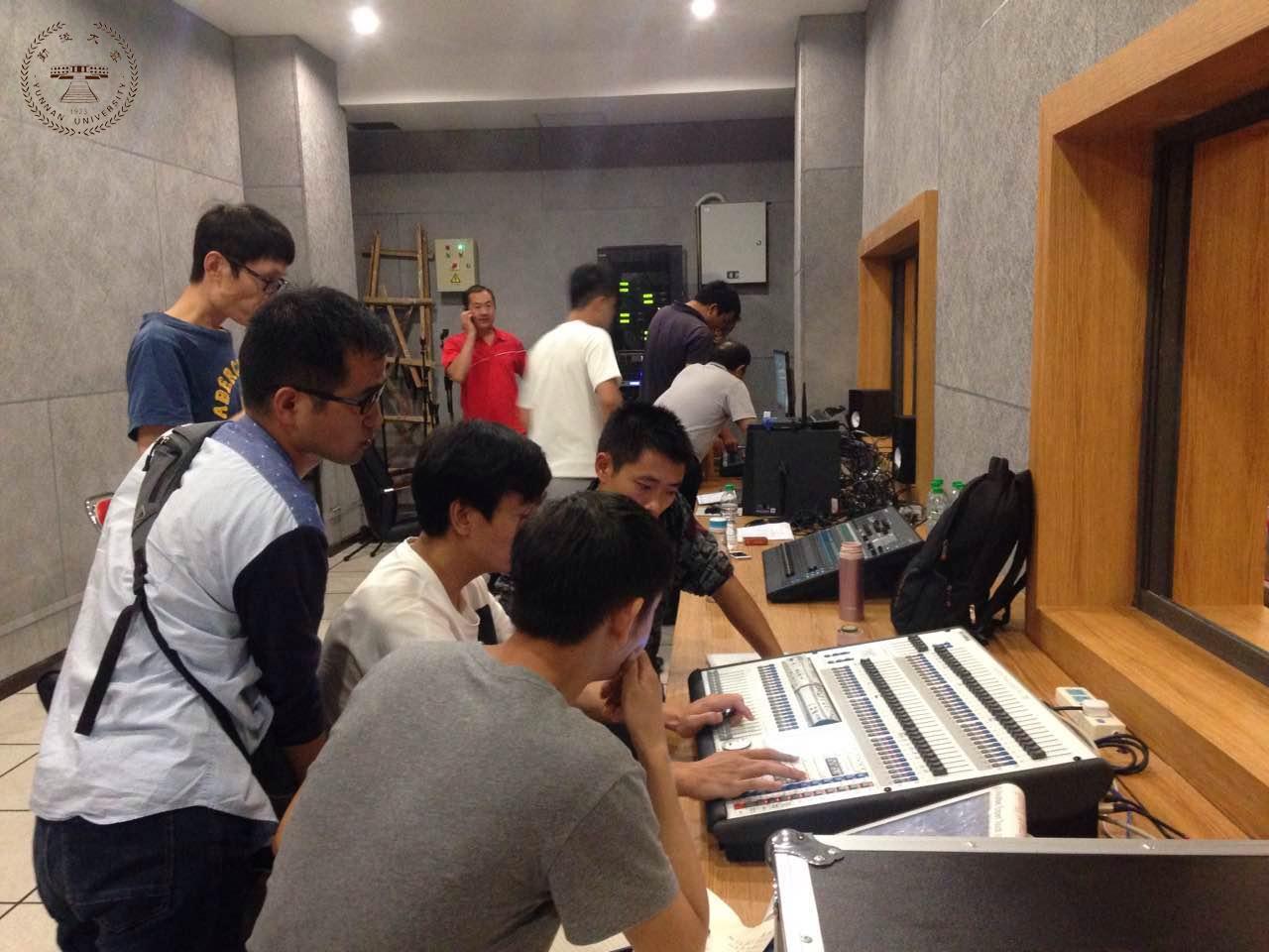 会堂的调音台、灯控台等都是比较专业的设备,此前大家都未曾接触过此类设备,学习该部分设备存在一定的困难。厂家工程师也提出了参加设备培训前需要有一定的基础知识的要求,6月以来学生会堂各种会议演出活动较多,各组成员都积极参与设备基础知识学习。通过前期的熟悉,大家对设备也有了一定了解,同时也做好迎接挑战的准备。7月4日到8日设备厂家工程师正式对所有设备进行培训。厂家工程师首先对系统的整个环境部署、设备基础知识、设备开关机顺序进行分类培训,然后对各设备的实际操作进行培训。培训期间大家认真记录,尤其是设备的专业名词进行认真备注,积极提问,在培训过程中最为复杂的是舞台灯光系统,需要根据不同的演出设定不同灯光效果,具有较强的灵活性。虽然培训周期较短,设备学习具有一定的难度,但每个组都掌握了设备的基本操作,大家对整套设备的操作流程有了更深入的理解。