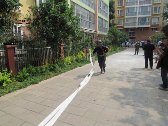 比赛分停车指挥、三人灭火、接力灭火三个项目举行。第一项是停车指挥,每个物业公司派出一名保安指挥业主倒车入库,从员工的规范动作、言行举止、操作流程进行打分。第二项是正确使用灭火器灭火,每个物业公司派三名保安,同时出发扑灭三个火盆,计时最短且操作最规范的为优胜者。第三项是接力灭火,三名保安轮流运送水枪、水带,连接水带至消防栓,喷水灭火,计时较短的为优胜者。