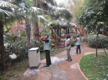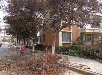 立即行动,组织绿化人员修剪冻伤冻死的树枝,并在树干上浇灌营养液,在切枝的伤口处涂 抹药剂,保持主干树枝的水分,希望树木起死回生,再一次复活。天水嘉园小区将修剪下 的枝叶粉碎后,做绿化肥料使用,龙泉小区修剪下来的树枝共 39车及时运送到环卫部门处理。