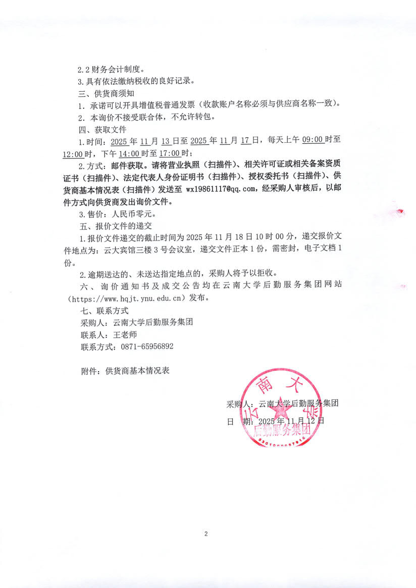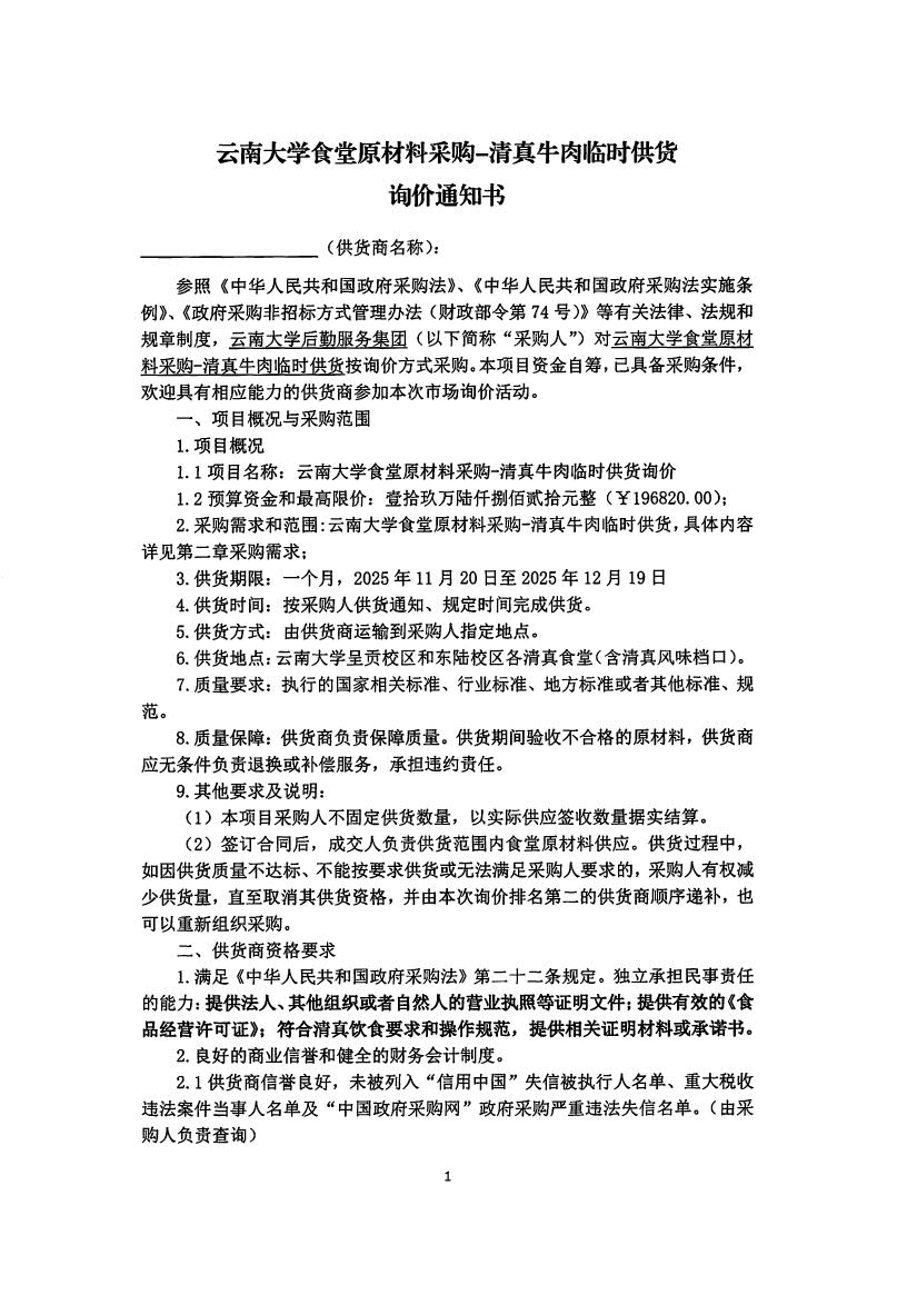 云南大学食堂原材料采购-清真牛肉临时供货询价通知书