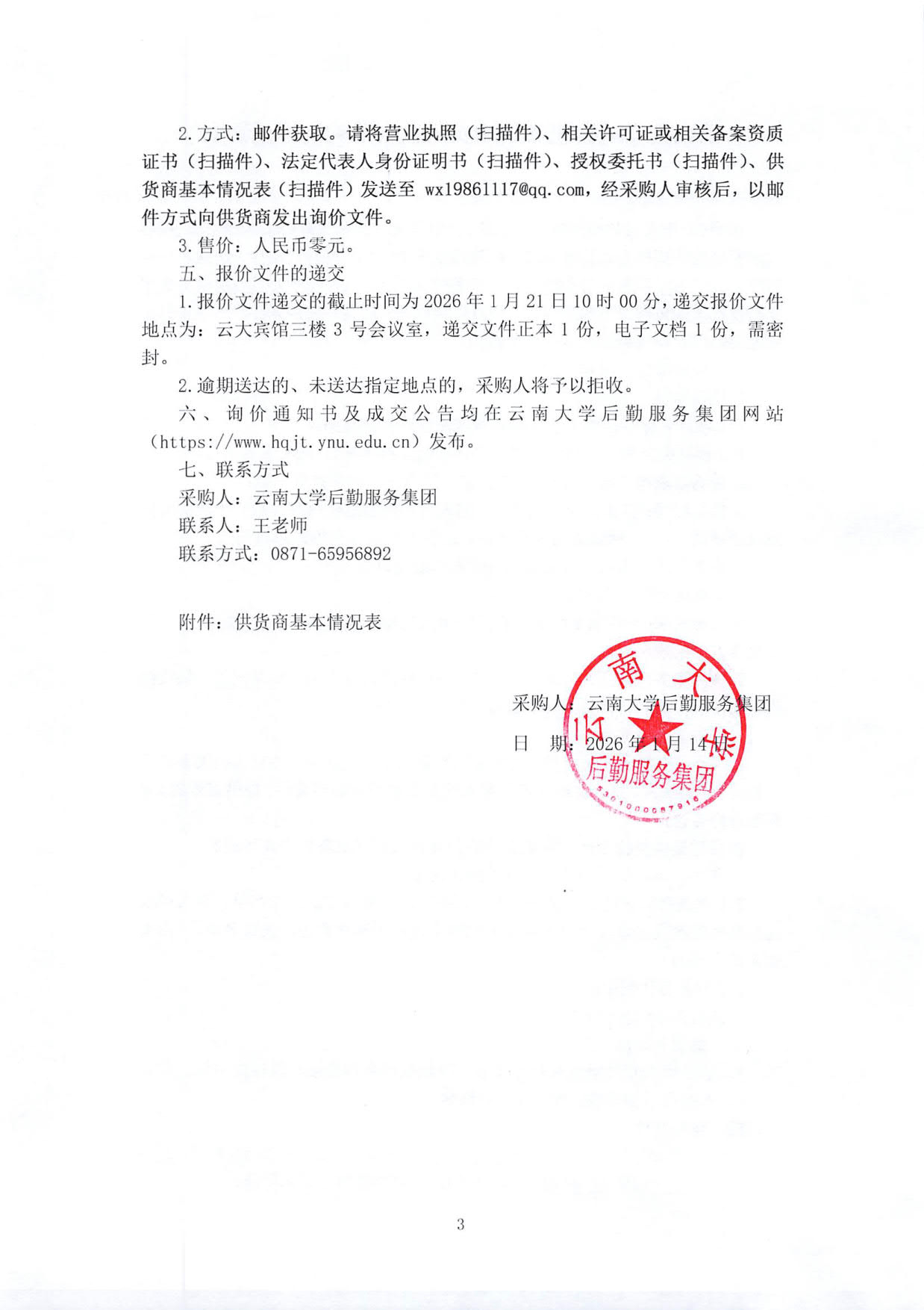 云南大学食堂可燃气体泄露报警系统更换询价结果公告