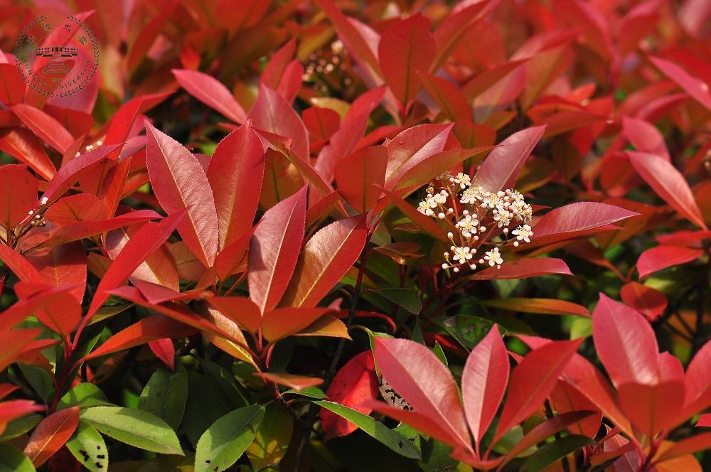 枝繁叶茂,树冠圆球形,早春嫩叶绛红,初夏白花点点,秋末累累赤实,冬季老叶常绿,园林观赏价值高。其新梢和嫩叶鲜红且持久,艳丽夺目,果序亦为红色,秋冬季节,红绿相间,极具观赏价值,是绿化树种中不可多得的红叶系列的观叶彩叶树种。