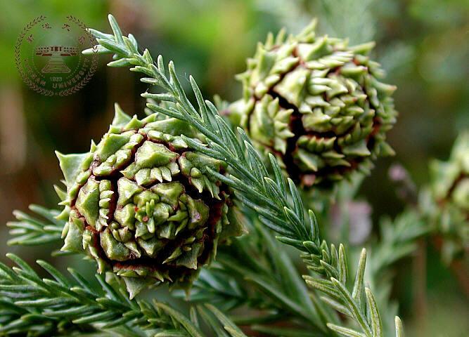 球果圆球形或扁球形,径1.2-2厘米,多为1.5-1.8厘米;种鳞20左右,上部有4-5(很少6-7)短三角形裂齿,齿长2-4毫米,基部宽1-2毫米,鳞背中部或中下部有一个三角状分离的苞鳞尖头,尖头长3-5毫米,基部宽3-14毫米,能育的种鳞有2粒种子;种子褐色,近椭圆形,扁平,长4-6.5毫米,宽2-3.5毫米,边缘有窄翅。花期4月,球果10月成熟。