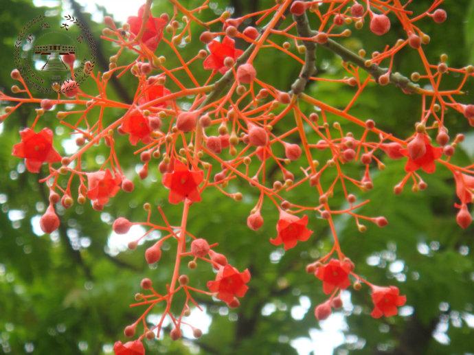 花:夏季开花,圆锥花序。花的形状象小铃钟或小酒瓶,先叶开放,量大而红艳,一般可维持1个月至6个星期左右。