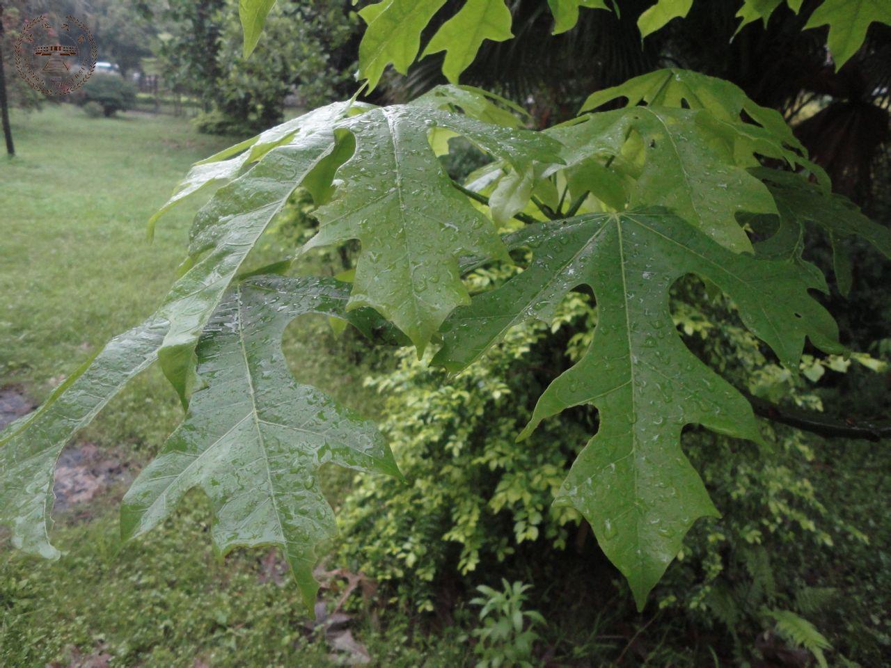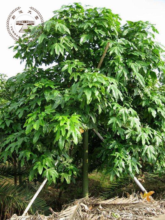 常绿乔木,主杆通直,冠幅较大,树形有层次感,株形立体感强。叶片宽大。