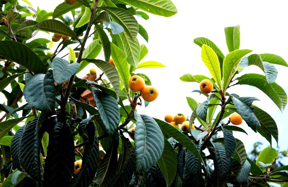 枇杷原产中国东南部,因叶子形状似琵琶乐器而名,其花可入药。树高3~5米,叶子大而长,厚而有茸毛,呈长椭圆形,状如琵琶。别名又叫芦橘、芦枝、金丸、炎果、焦子。枇杷与大部分果树不同,在秋天或初冬开花,果子在春天至初夏成熟,比其它水果都早,因此被称是“果木中独备四时之气者”。枇杷的花为白色或淡黄色,有五块花瓣,直径约2厘米,以五至十朵成一束,可以作为蜜源作物。