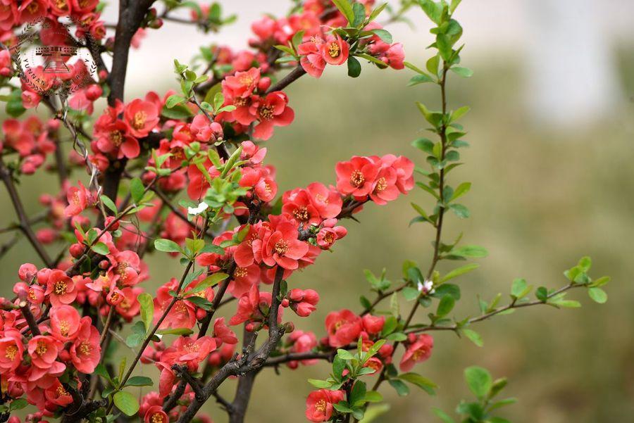落叶灌木,高达2米,枝条直立开展,有刺;小枝圆柱形,微屈曲,无毛,紫褐色或黑褐色,有疏生浅褐色皮孔;冬芽三角卵形,先端急尖,近于无毛或在鳞片边缘具短柔毛,紫褐色。叶片卵形至椭圆形,稀长椭圆形,长3-9厘米,宽1.5-5厘米,先端急尖稀圆钝,基部楔形至宽楔形,边缘具有尖锐锯齿,齿尖开展,无毛或在萌蘖上沿下面叶脉有短柔毛;叶柄长约1厘米;托叶大形,草质,肾形或半圆形,稀卵形,长5-10毫米,宽12-20毫米,边缘有尖锐重锯齿,无毛。花先叶开放,3-5朵簇生于二年生老枝上;花梗短粗,长约3毫米或近于无柄;花直径3-5厘米;萼筒钟状,外面无毛;萼片直立,半圆形稀卵形,长3-4毫米。宽4-5毫米,长约萼筒之半,先端圆钝,全缘或有波状齿,及黄褐色睫毛;花瓣倒卵形或近圆形,基部延伸成短爪,长10-15毫米,宽8-13毫米,猩红色,稀淡红色或白色;雄蕊45-50,长约花瓣之半;花柱5,基部合生,无毛或稍有毛,柱头头状,有不显明分裂,约与雄蕊等长。果实球形或卵球形,直径4-6厘米,黄色或带黄绿色,有稀疏不显明斑点,味芳香;萼片脱落,果梗短或近于无梗。花期3-5月,果期9-10月。