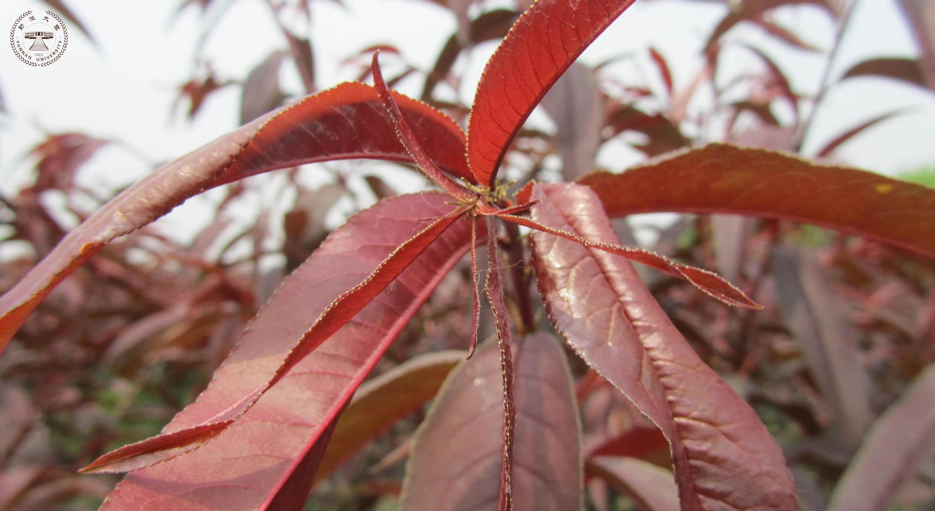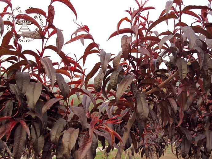 红叶碧桃株高3—5米,树皮灰褐色,小枝红褐色。单叶互生,卵圆状披针形,幼叶鲜红色。花重瓣、桃红 色。核果球形,果皮有短茸毛,内有蜜汁。三月份先花后叶,烂漫芳菲,妩媚可爱,是优良的观花树种。