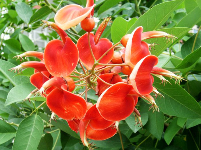 鸡冠刺桐因状似鸡冠,故名“鸡冠刺桐”。落叶灌木或小乔木。落叶灌木或小乔木,茎和叶柄稍具皮刺。羽状复叶具3小叶;小叶长卵形或披针状长椭圆形,花期约4~7月,花开时红色,且花期长,故适于庭院观赏也用于道路中央绿化。
