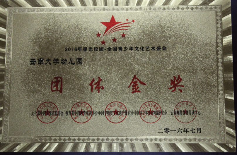今年6月,云南大学幼儿园艺术团美术班的“小画家”在“俄罗斯第二十二届世界和平书画展国际青少年书画评奖”大赛中,用稚嫩的小手和天马行空的想象,绘出了心中奇幻的童话世界。最后经专家组评议,云南大学幼儿园共有8位幼儿荣获特金奖、9位幼儿荣获金奖、3位幼儿荣获银奖,张梦娇、李易两位老师荣获“组织辅导园丁奖”。