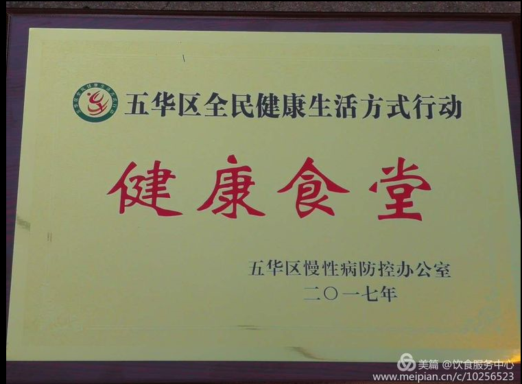 2017年11月,按照五华区政府“慢性病综合防控示范区建设工作”的要求,在区卫计局、市场监督管理局组织开展的全民健康生活方式行动中,经专家组考核评估,东陆校区一食堂被评选为“健康食堂”。